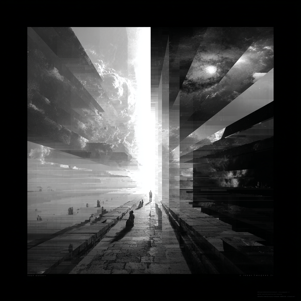 - Visuel : Slit-Scan génératif & Volumetric Light.